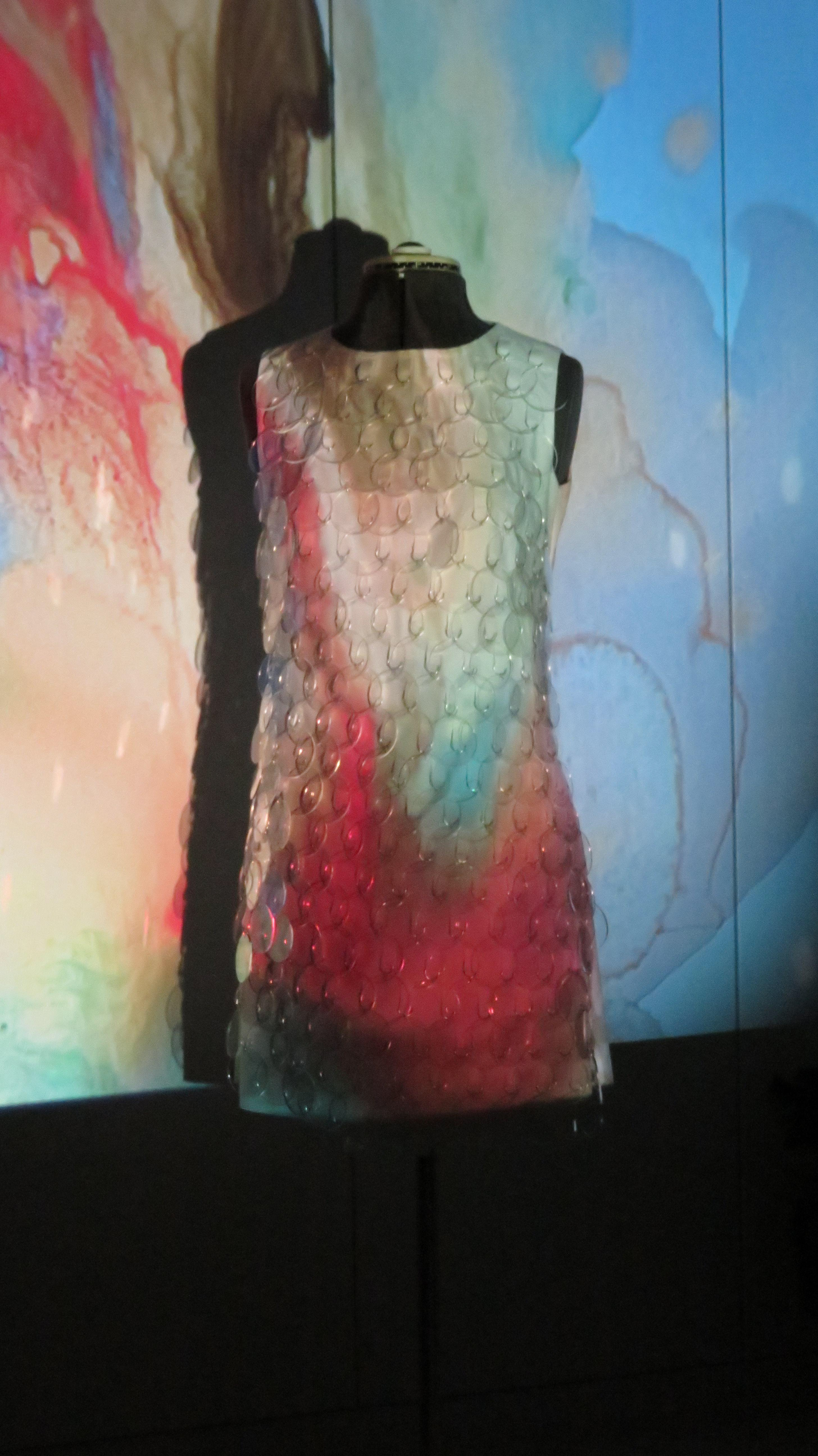 The images above show how the dress looks when moving and when natural light is used on the disks. The image on the right shows a close up of how light can affect some disks at a time, but not all.